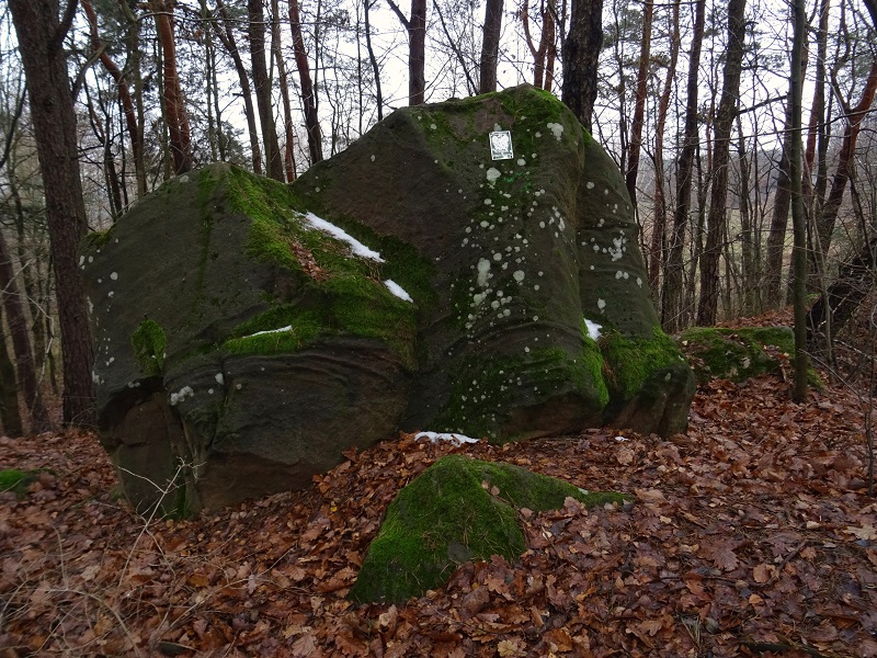 Ostatecznie po licznych trudnościach dotarliśmy do miejsca, gdzie zarządziłem postój dla ekipy, a sam wybrałem się na poszukiwania kolejnej atrakcji. Zbyt wiele o niej nie wiedziałem. Posiadałem jedynie jej zdjęcie, które musiało mi wystarczyć w jej namierzeniu. Wstępnych lokalizacji było kilka. Skrupulatnie przeszukiwałem każdą z nich. Przyczyniło się to do błądzenia, które co jakiś czas przerywały krótkie wizyty w opuszczonych kamieniołomach. Te położone zazwyczaj w środku lasu, zarosły do tego stopnia, że trudno już było odnaleźć w nich odsłonięcia skał, które kiedyś w nich wydobywano.